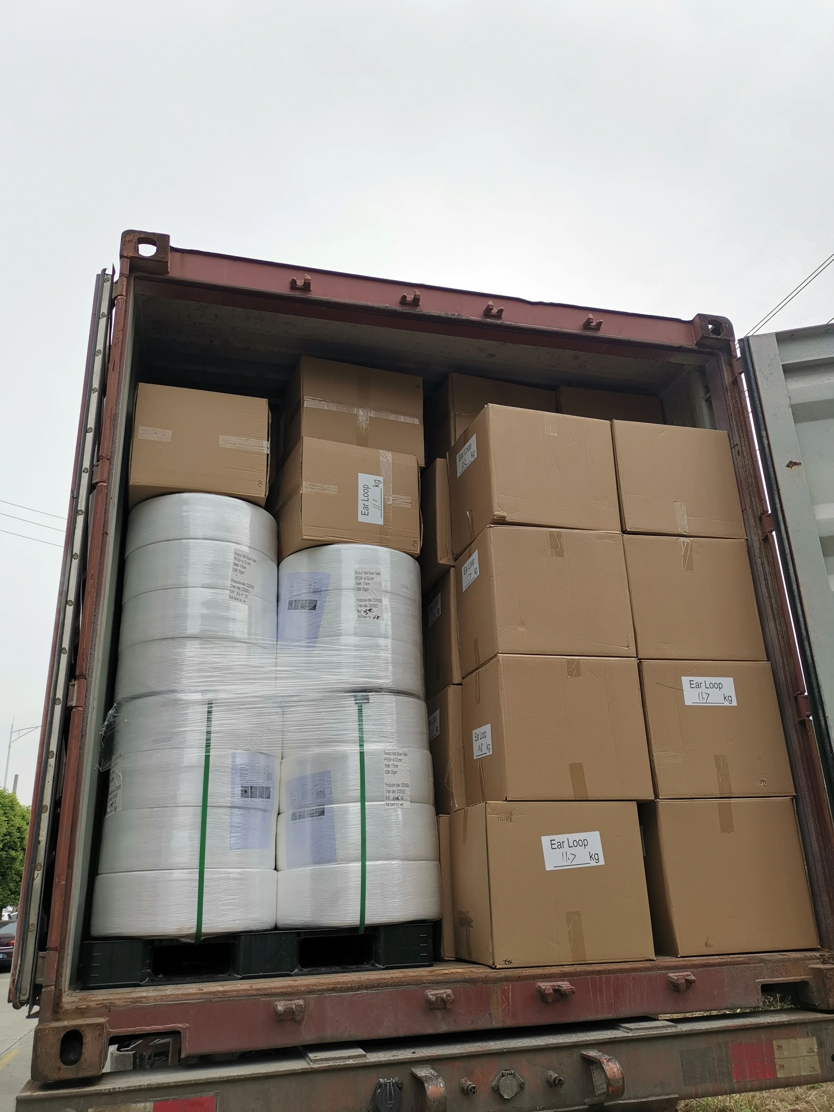 We organize the elastic band in a line to a carton. then it will not get mess when you use to make masks.