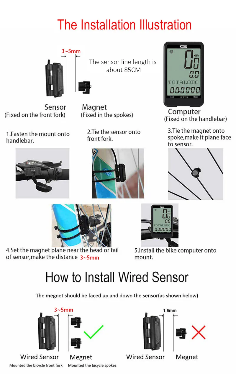 Product Name | Sunding Bike Computer Wired Bicycle Computer Cycle Speedometer Cycling Odometer Bike Meter Accessories Speed Sensor Waterproof |