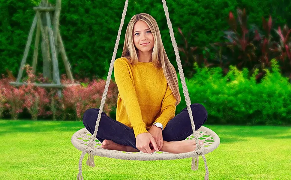 This Hammock is made of 100% Cotton Canvas which make you a little warm.The cotton material-breathable, comfortable, no unpleasant chemical odor! Comfortably accommodates 2 adults and holds up to 450Lbs – Suitable for all ages.