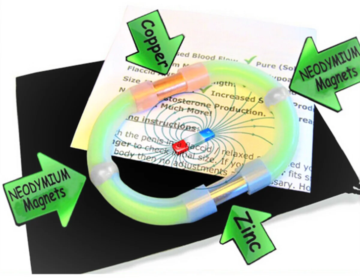 This Ring of Power / Magnetic Zinger is in fact a Natural Galvanic Battery. It has electro-dynamic Martyr Zinc & Copper, which produce a perpetual flow of electrical energy (up to 1.49 volts) when in contact with the natural moisture of the skin. This small amount of Galvanic Current painlessly stimulates Cellular Growth by means of intracellular signal activation, it also stimulates the Leydig cells in the testicles to produce amazing amounts of testosterone, and also allows the trans-dermal absorption of the very beneficial Zinc and Copper elements. Super soft Zinc increases absorption and added to all of this is the magnificent effects of the two high power neodymium magnetic spheres to gently stimulate blood flow and cellular reproduction.Dr. Robert Blakoe, an anatomist and physiologist invented a device that would harness the effect of electro-dynamism to give his patients a new enhanced sexual power. Their erections become stronger.