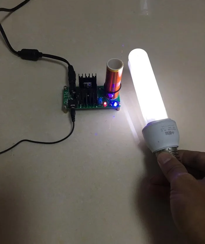 2.Light: after tesla coil on, the fluorescent lamp can be on.