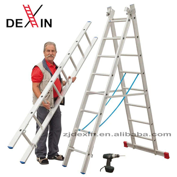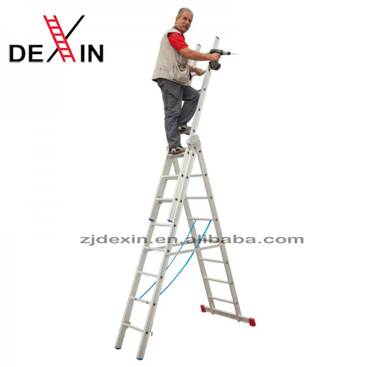 3 Sections Combination Extension Ladders are consisting of 3 single straight ladder, Each of the combination can be used as a seperate ladder. The ladders have 6 different heights ranging from 7 to 12 steps with max heights from 4.25 to 7.89m. The models read as the following: