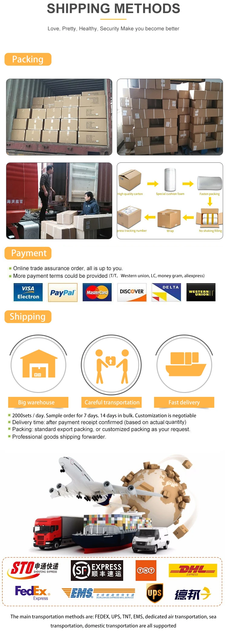 Question: What u payment terms? Answer:We think reliable is best quality, so we could accpet ALIBABA trading assurance as well as T/T firstly for small order.