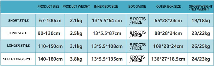 Size | 67-100cm, 90-130cm, 110-150cm, 140-180cm |