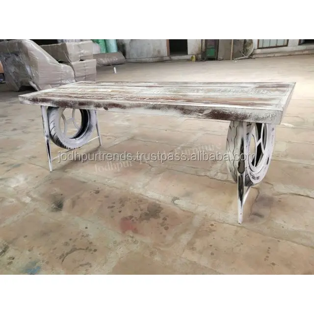 Product Name | Commercial industrial Indian style furniture white washed wood and iron with wind wheels dining table |