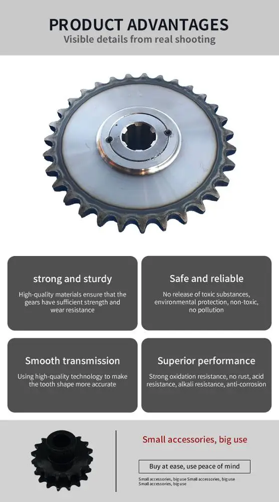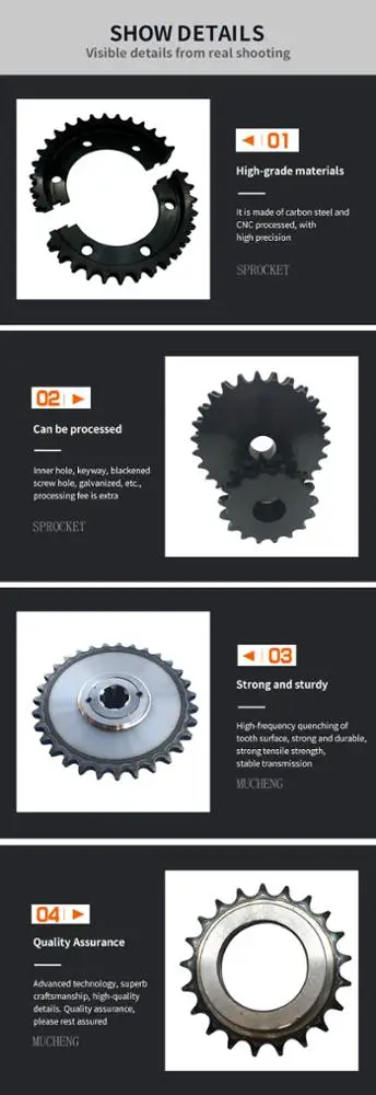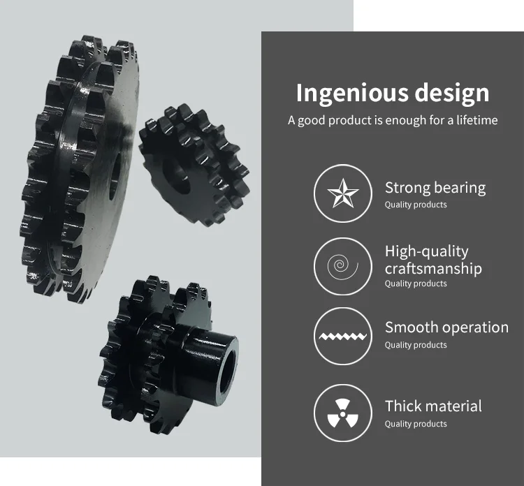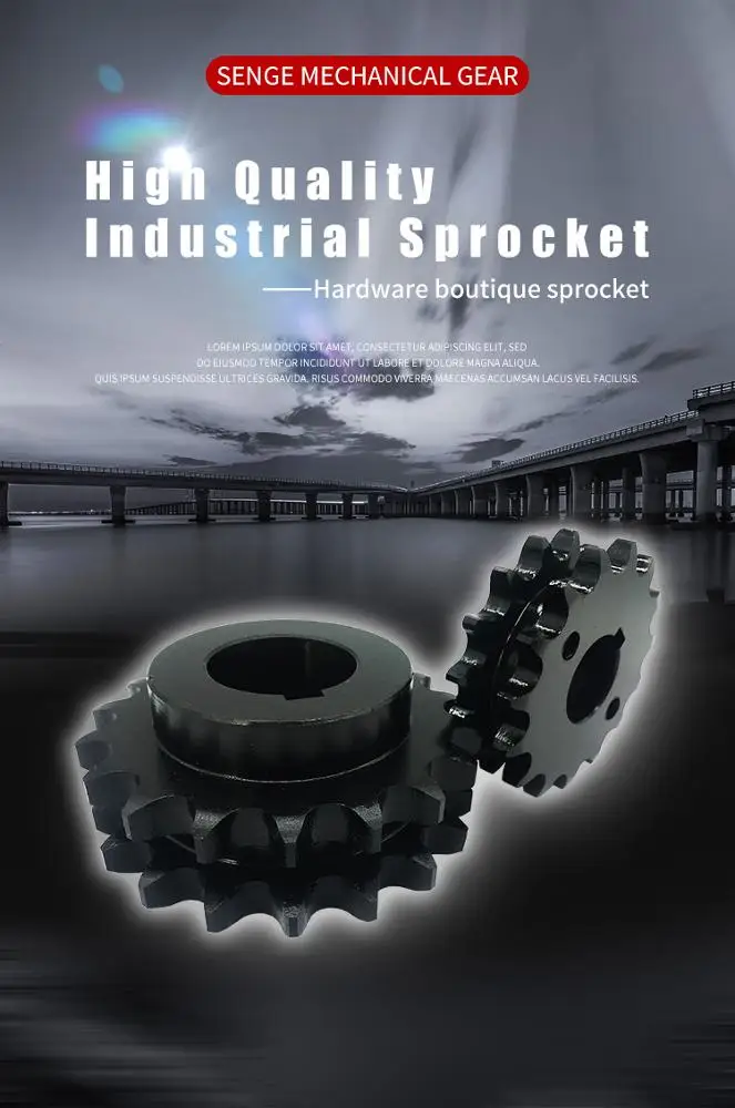Renqiu Senge Machinery Parts Co., Ltd. The factory specializes in the production of gears (straight teeth, helical teeth, bevel teeth, spiral teeth), sprockets (flat blade, stepped, double row), racks, shafts, flanges, couplings, boxes, stamping Pieces and other mechanical transmission accessories.