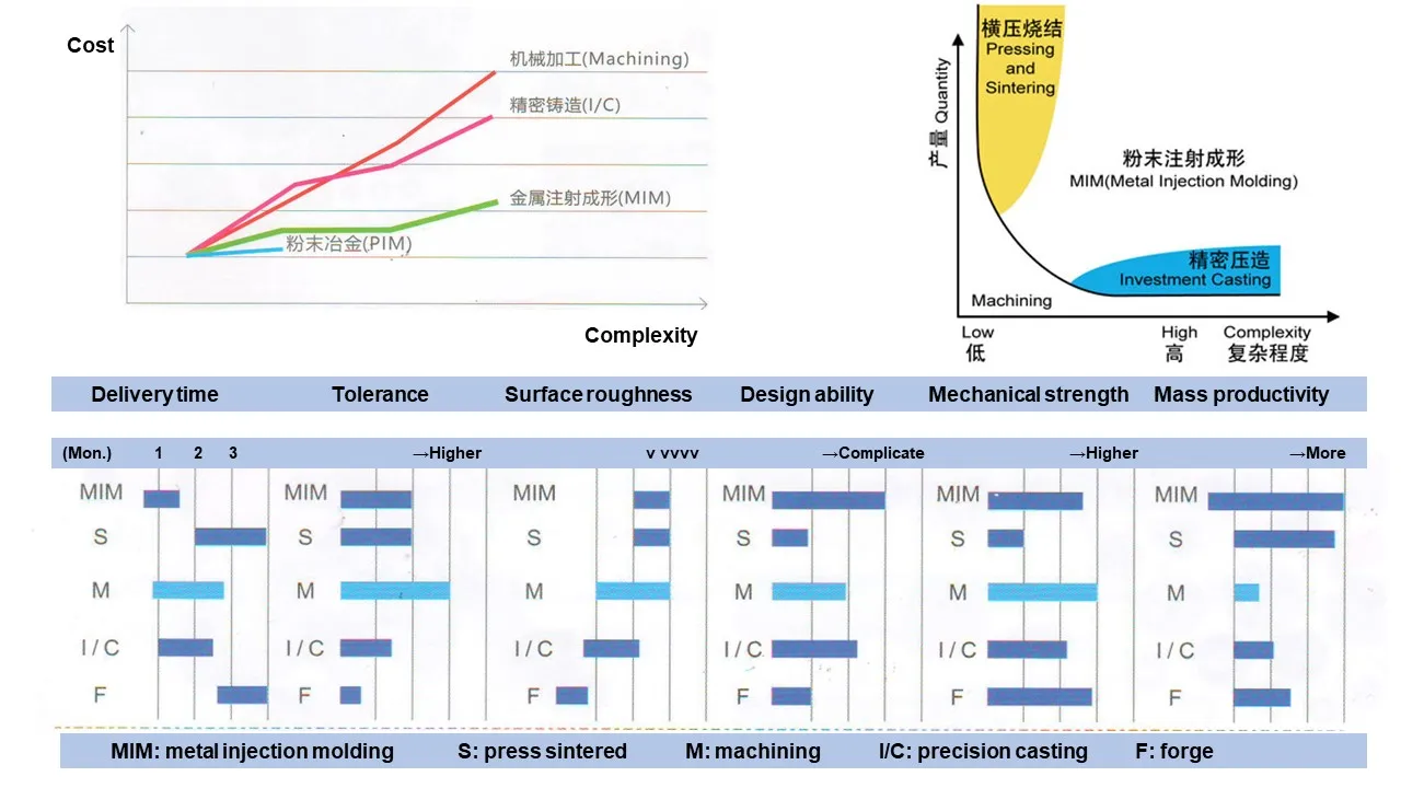 Characteristics | PM | MIM | Machining | Precision casting |