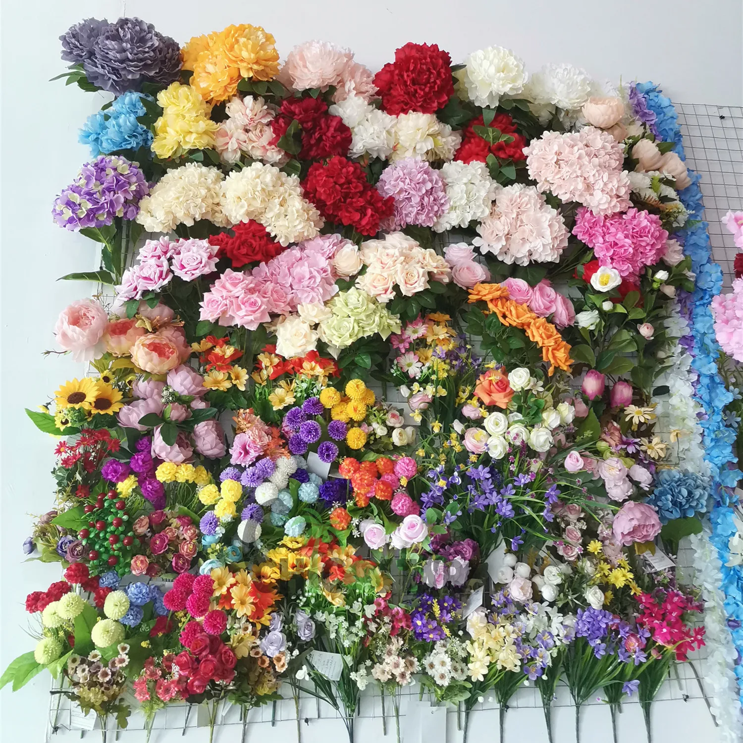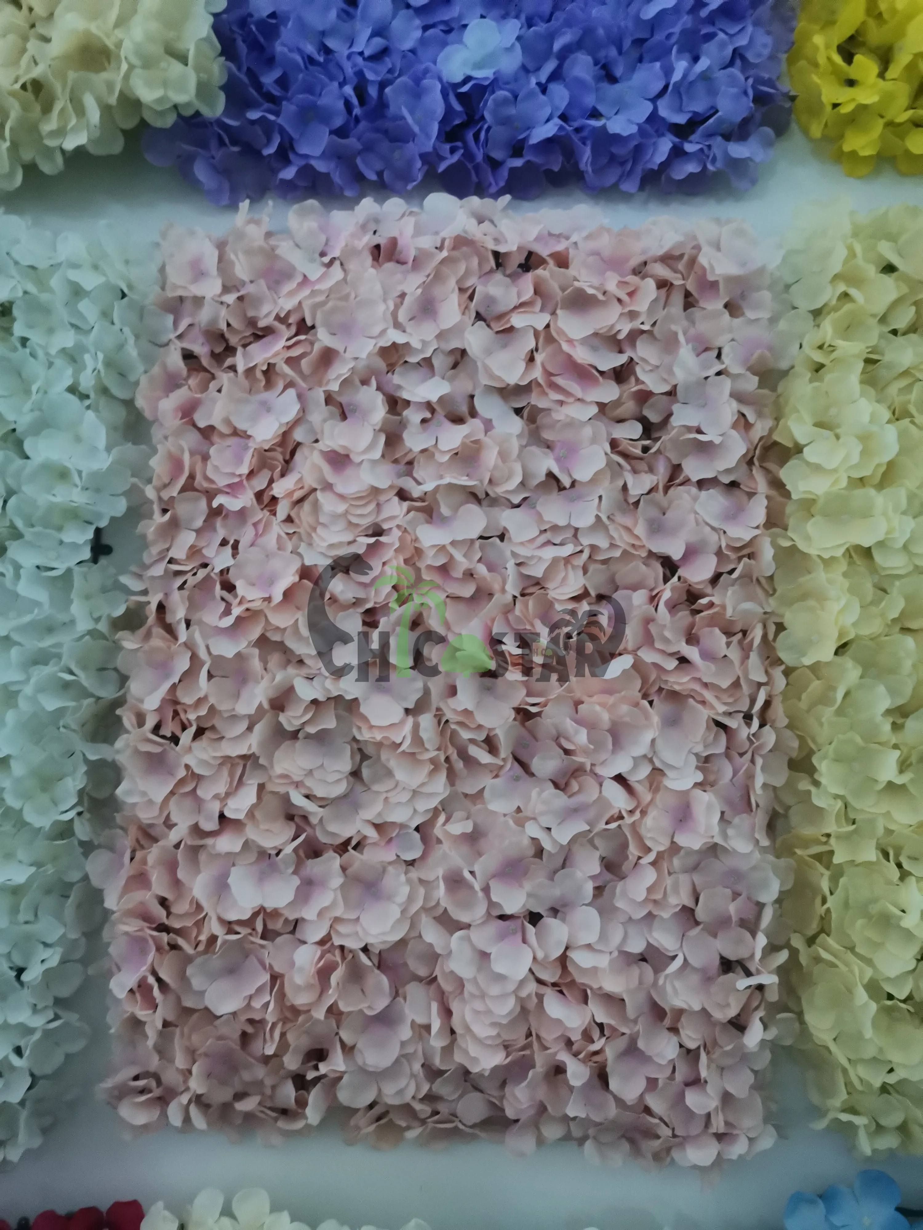 The artificial hydrangea wall is made of silk cloth with a size of 40*60CM. It can be customized, and a variety of styles and colors can be selected.