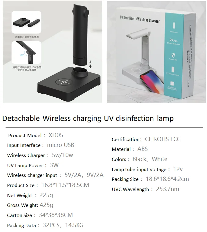 After that, it turns off and only acts as a sterilizing lamp only. High-Quality Charging architecture ensures you get the best battery juice for your smartphone at lighting speeds. It can also charge your phone with a case on it! Each charging-kit includes: + Phone Sterilizing Wireless Charging Station + USB Charging Cable with User Manual + Decorative Skin-kit