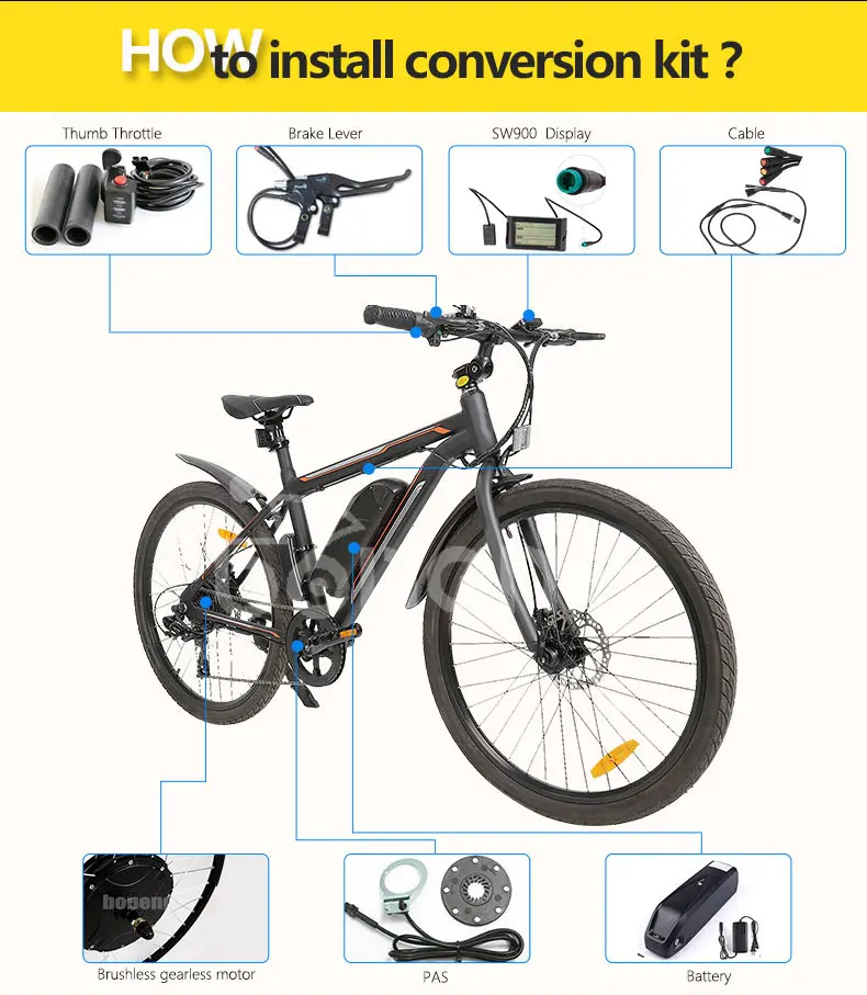 Q2. Is the kits difficult to install ?How to install? A:Not difficult but need you like hand-work. Only install our motor kits and fix well the brake lever and controller.Connect the cables is ok. We will offer you inslation viedo and will service on you on line.
