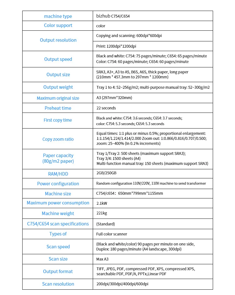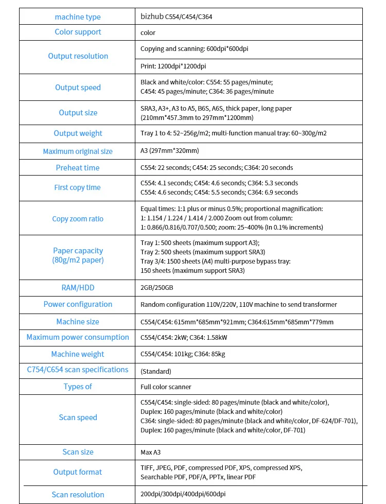 Product Name | KM BH C754/C654/C554/C454/C364/C284/C224/C754e/C654e/C554e/C454e/C364e/C284e/C224e Used Laser Digital Copier Machine | |