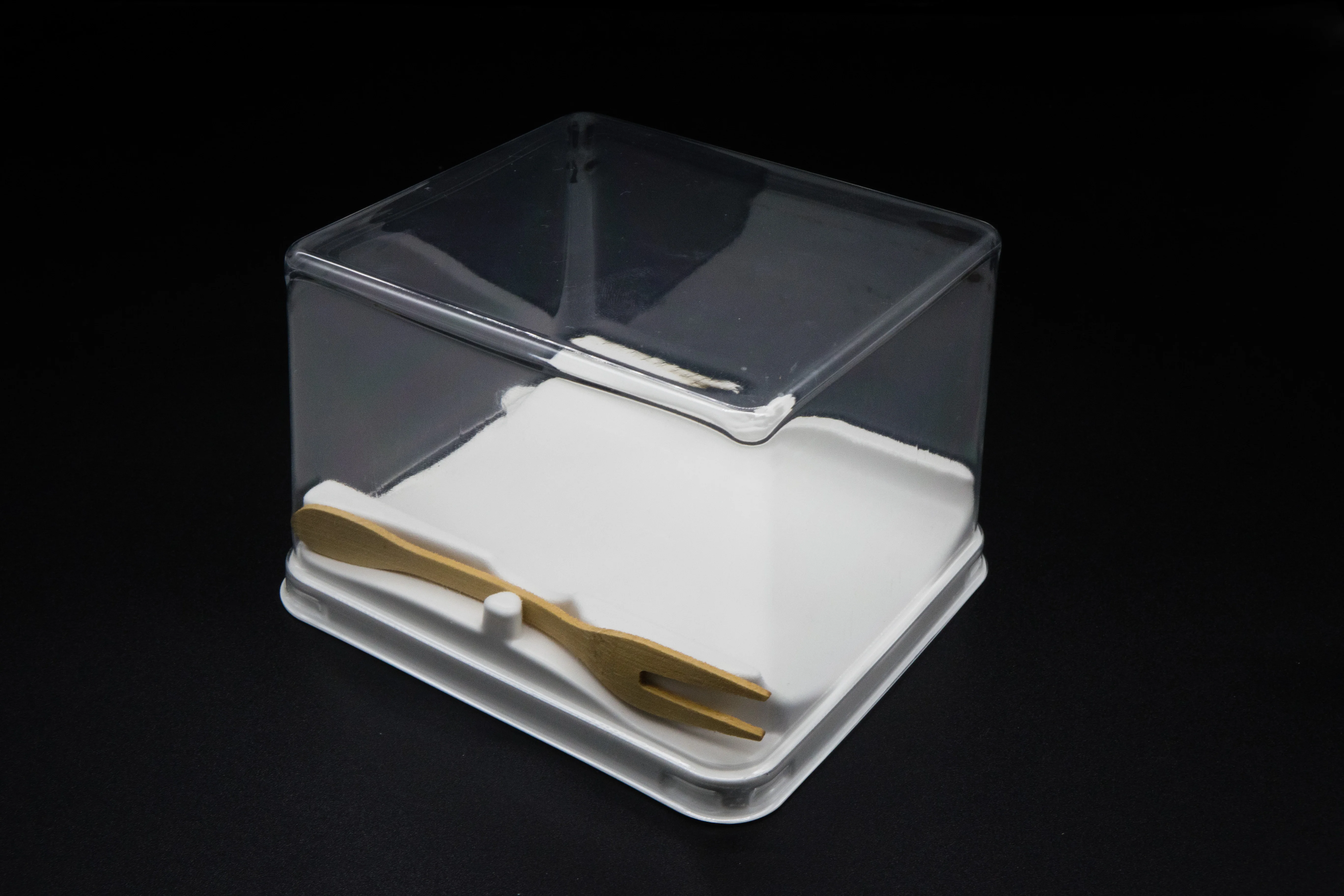 Food Grade Plastic Clear Pet Mini Rectangle Cake Box Packaging Cupcake Container with Fork