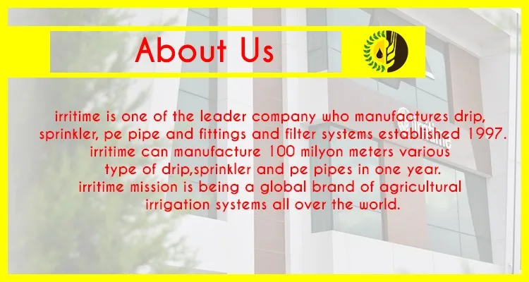 We are manufacturing and providing all kind of agricultural irrigation systems. Drip Irrigation Pipes and fittings, Sprinkler irrigation pipe and fittings , filter systems, pe pipes and fittings. We export our goods more then 30 country all over the world