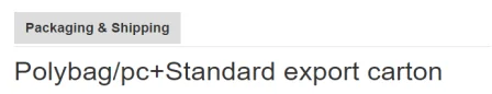 | Packing: | 1 pc/poly bag+carton, then in standard carton. | |