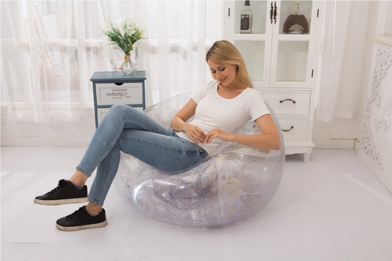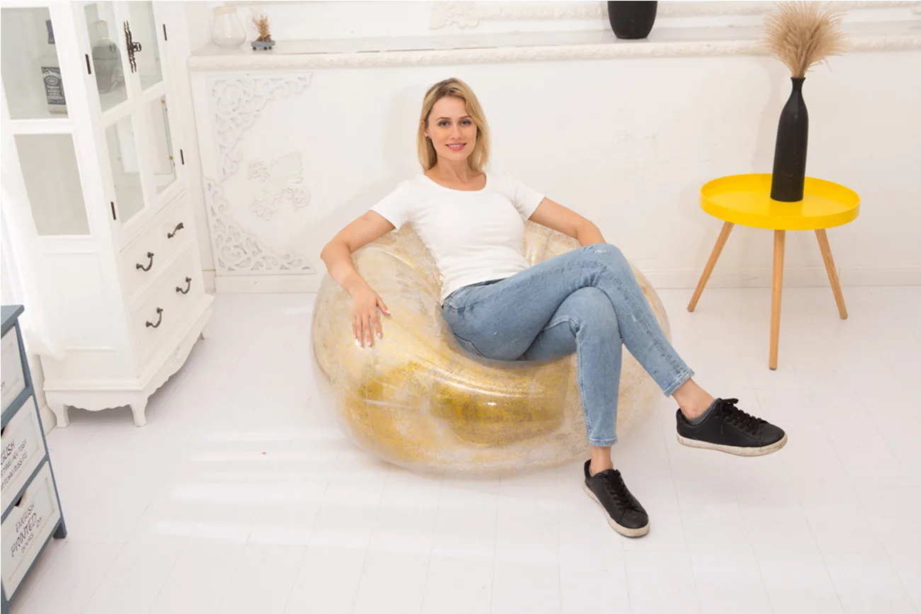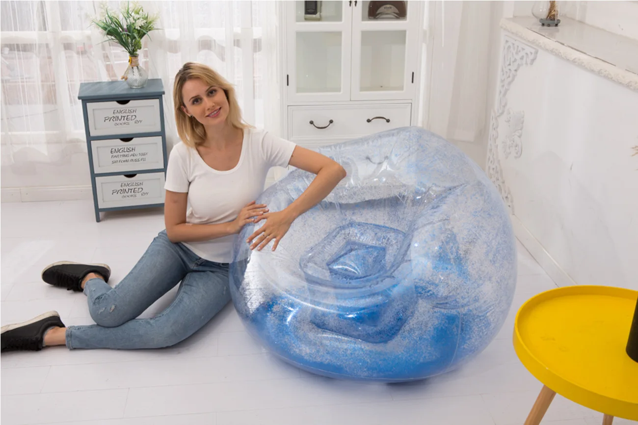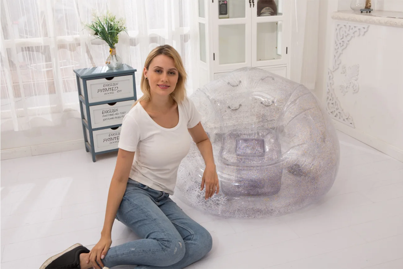 Lazy Time Party Chair Custom Transparent PVC Inflatable Sofa Inflatable Sofa Chair with Glitter Inflatable Sofa