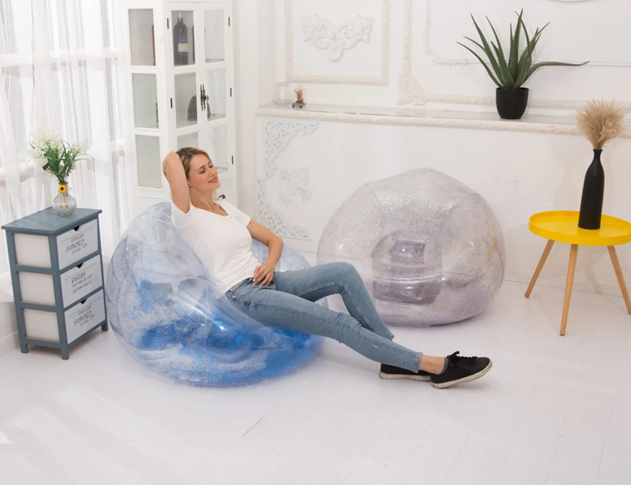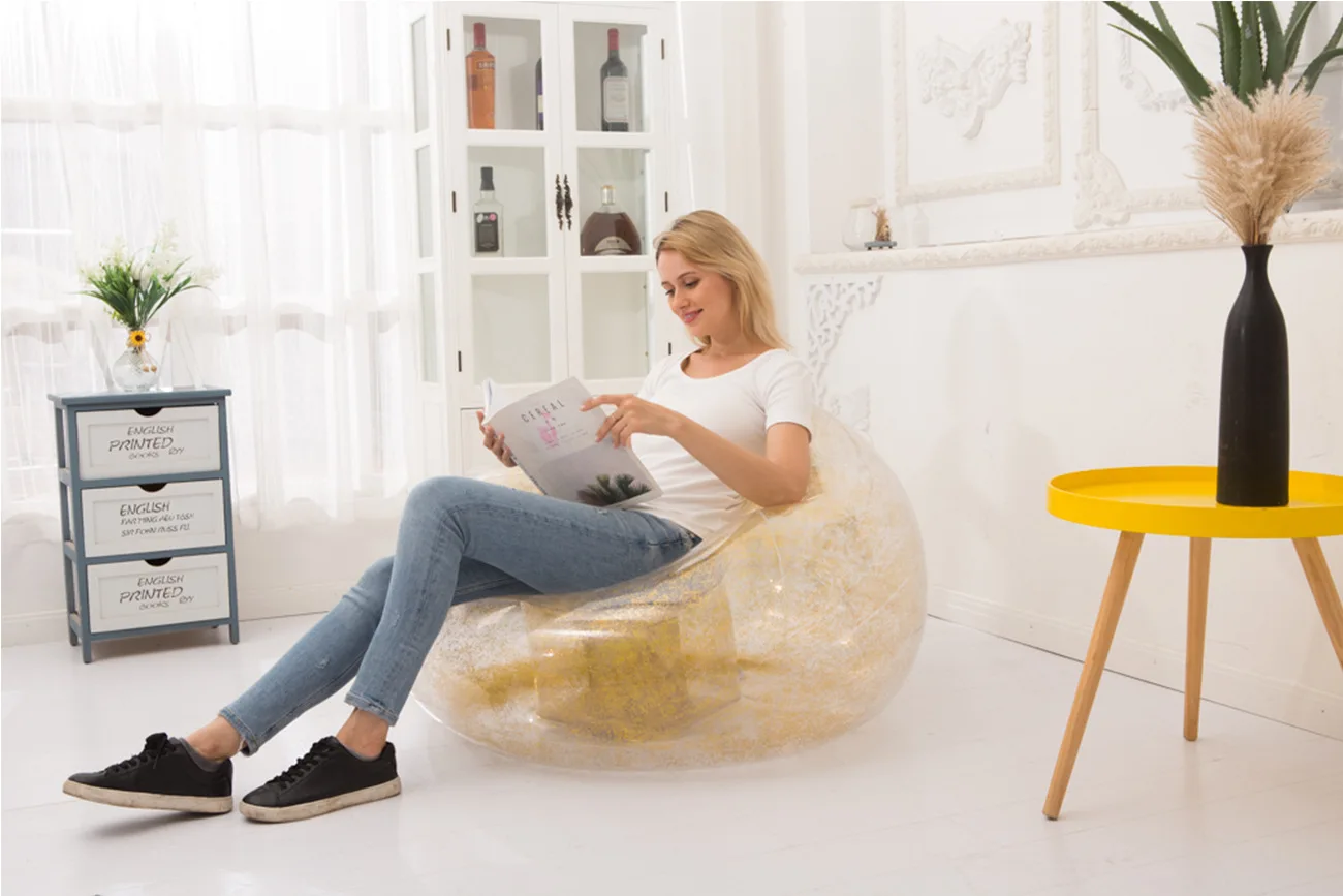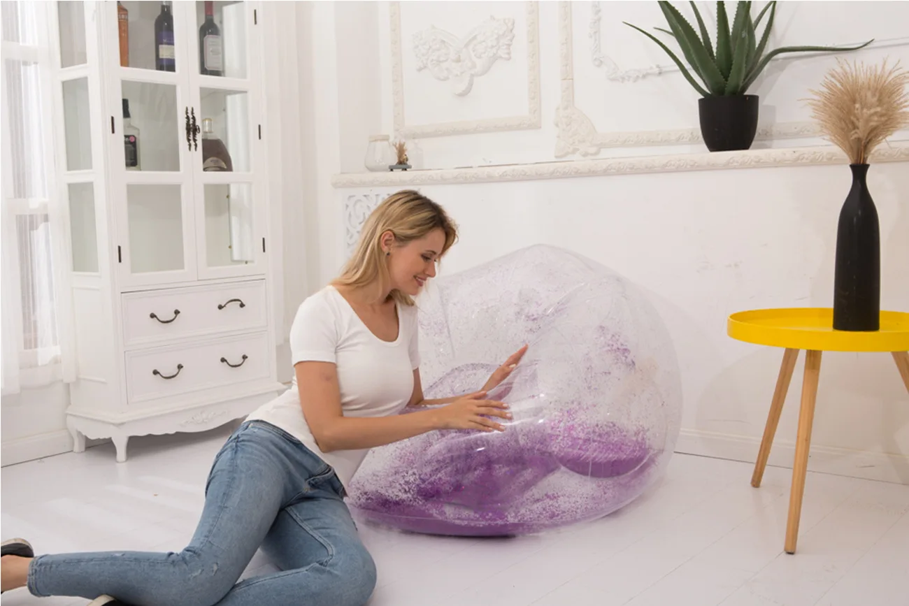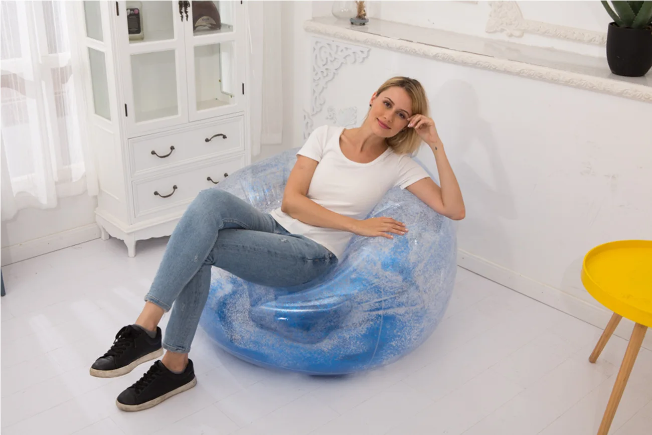 Lazy Time Party Chair Custom Transparent PVC Inflatable Sofa Inflatable Sofa Chair with Glitter Inflatable Sofa