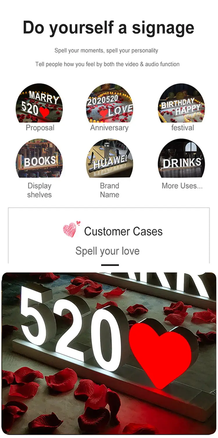 ABCMIX is aiming to redefine the signage market, using unique technology to make the signs 'simple & easy installation, DIY sign, no production time'. So ABCMIX is different from the traditional customized signs, focusing on the DIY signage, and redefined the signage with 'Simple & DIY'. For example, the innovative magnetic led letters, track letters and so on. We are trying to let the ABCMIX led letters enter people's daily life and holiday activities, not limited to commercial activities.