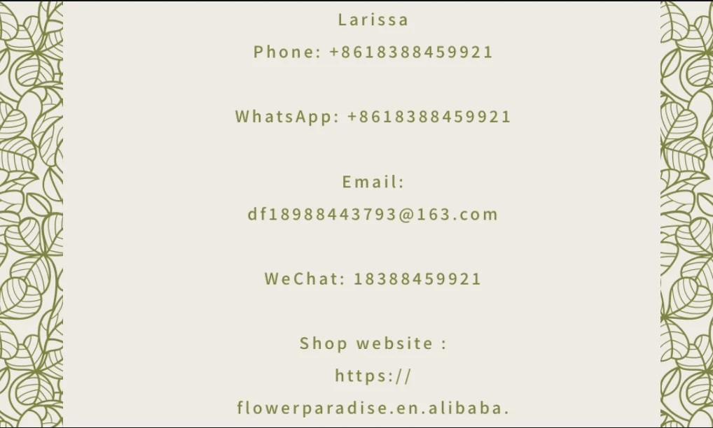 Q1: What’s your advantage to make a difference? A: We have rich experience in artificial flowers supplies with an own factory. We provide factory-direct selling price while keeping a high standard of quality control.OEM services are available and we can accept low MOQ. We are reliable on timely delivery. Sourcing service is available even though your required product is not in our portfolio.