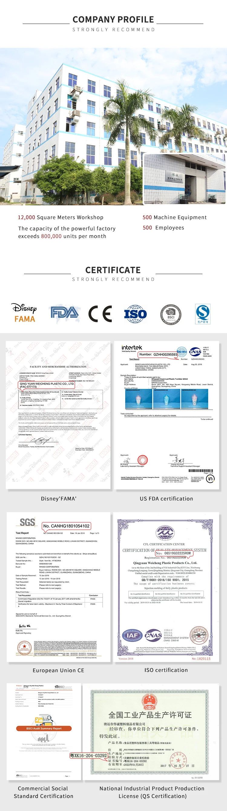FDA. LFGB. CE. Disney'FAMA'