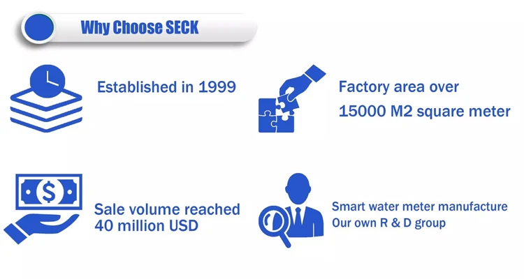 SECK Split type remote reading water meter is equipped with a thick film resistance transducer. Different resistance values correspond to different character wheel position. The resistance value of mechanical meter can be converted into meter readings at any time.