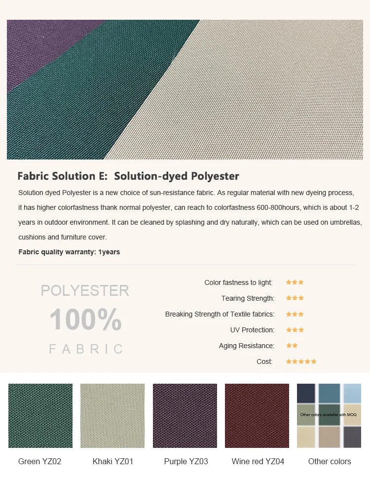 Cover color | Olefin 270g Color fastness 800h grade 4 |