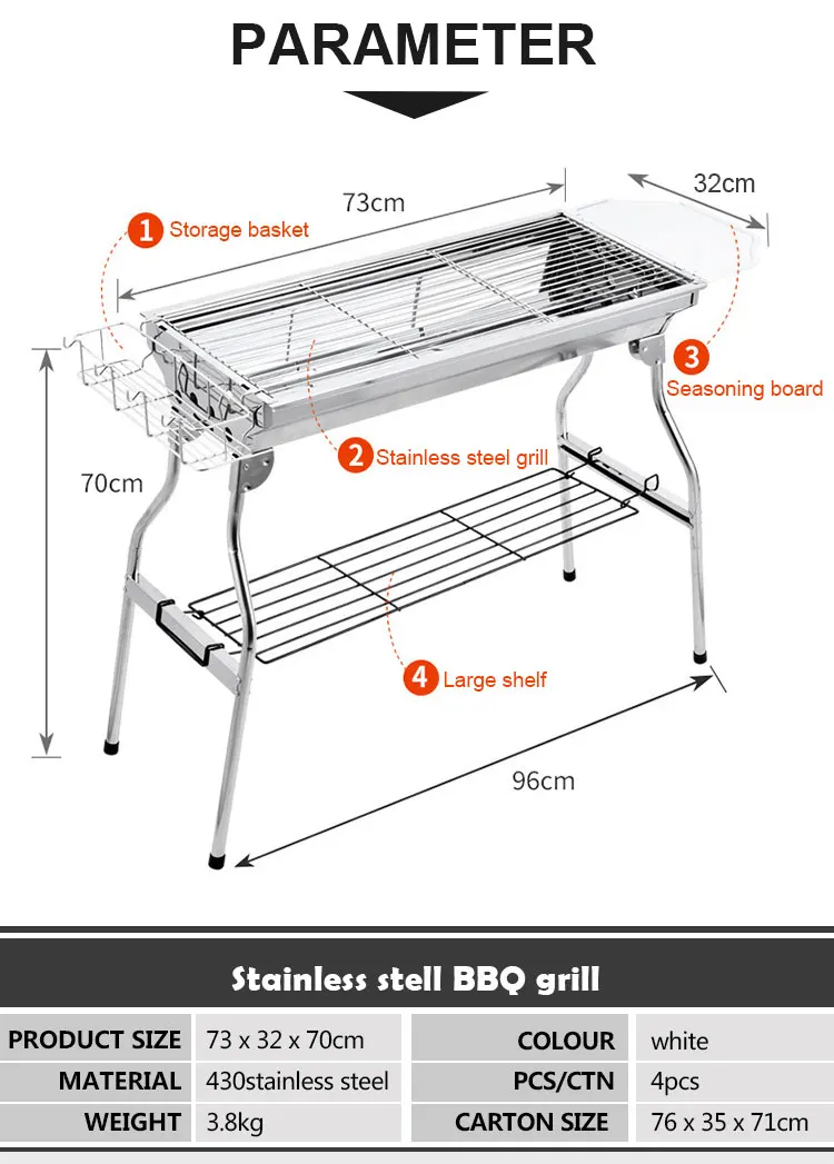 Product unfolded size: 73*33.5*70cm Single product packaging size: 76*18*35cm Packing number: 4 sets/piece Carton packaging size: 77*39*73cm Applicable number: 5 people or more Weight: 6.5kg/set