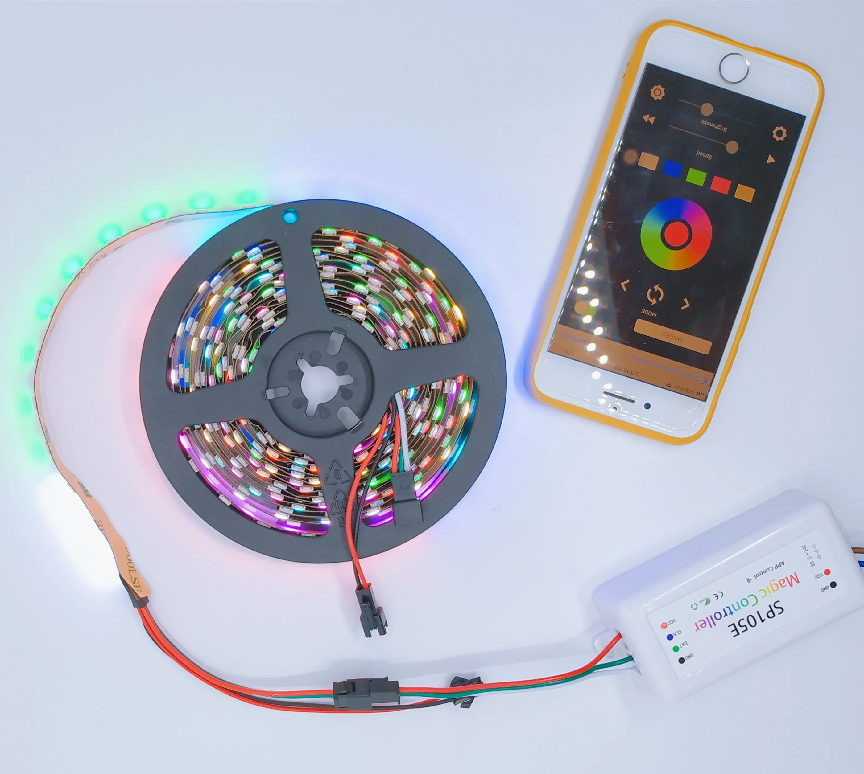 The controller has a built-in pickup,and the light strip responds to the beat according to the frequency of the external sound