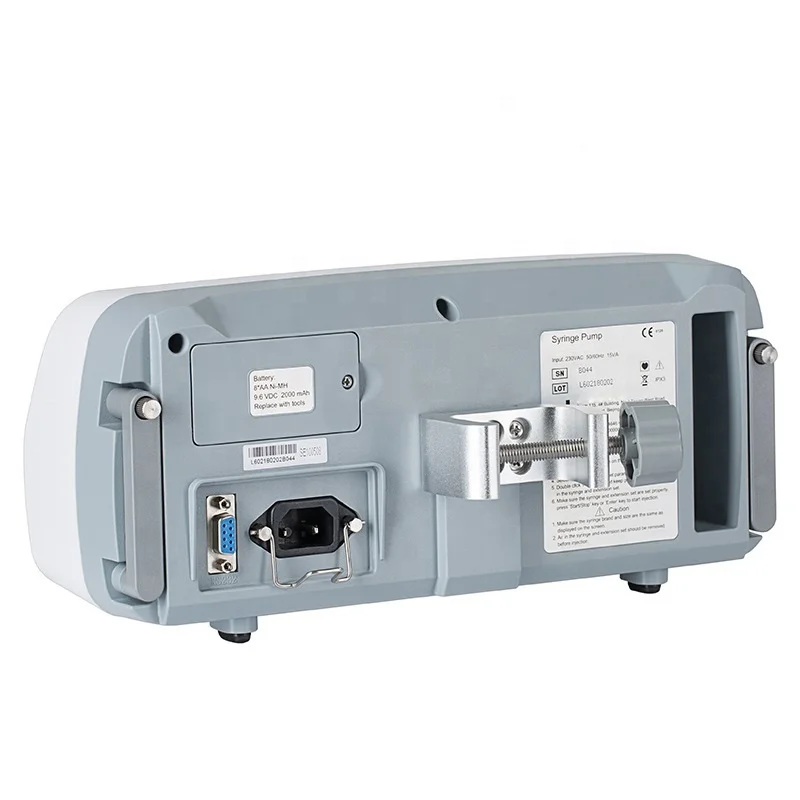 Additional Features | Real-time infused volume, automatic power switching, automatic syringe identification, mute key, purge, bolus, anti-bolus, system memory | ||||||