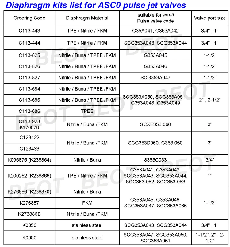 We produced series rubber diaphragm membrane kits for SCG353 series pulse jet valve.