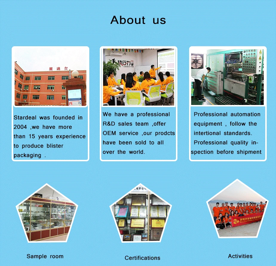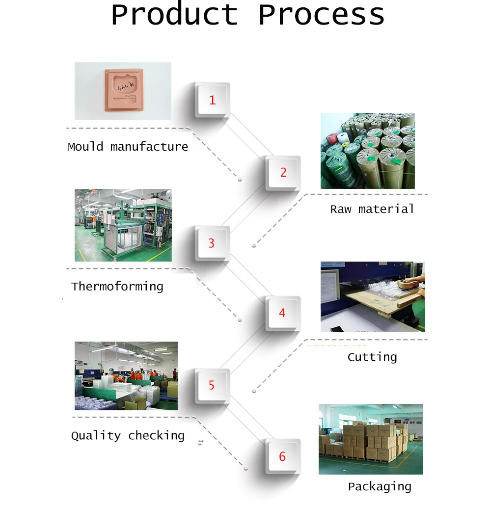 Variety of products | Theroformed blister tray ,plastic folding box ,clamshell blister packaging ,plastic containers ,flocking blister tray ,plastic insert trays etc. |