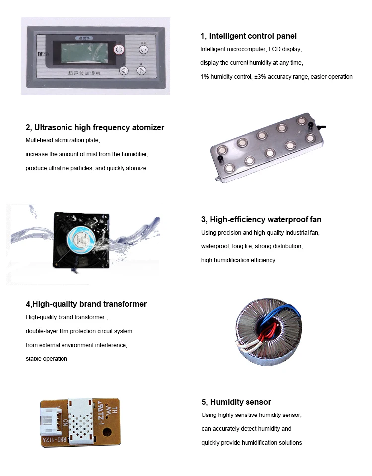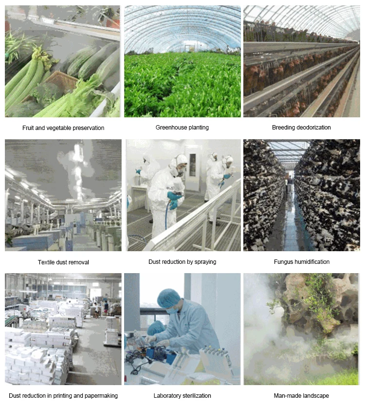 Model type | Head | Fog Volume(kg/h) | Fog Particle Diameter(μm) | Power(w) | Coverage(m²) |