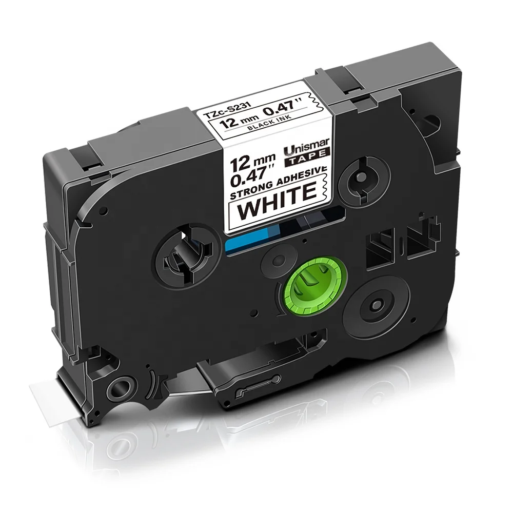 12mm laminated tz tape Strong Adhesive tze-S231 Compatible Label Tape tz S231 Black on White For Brother P-touch Printer