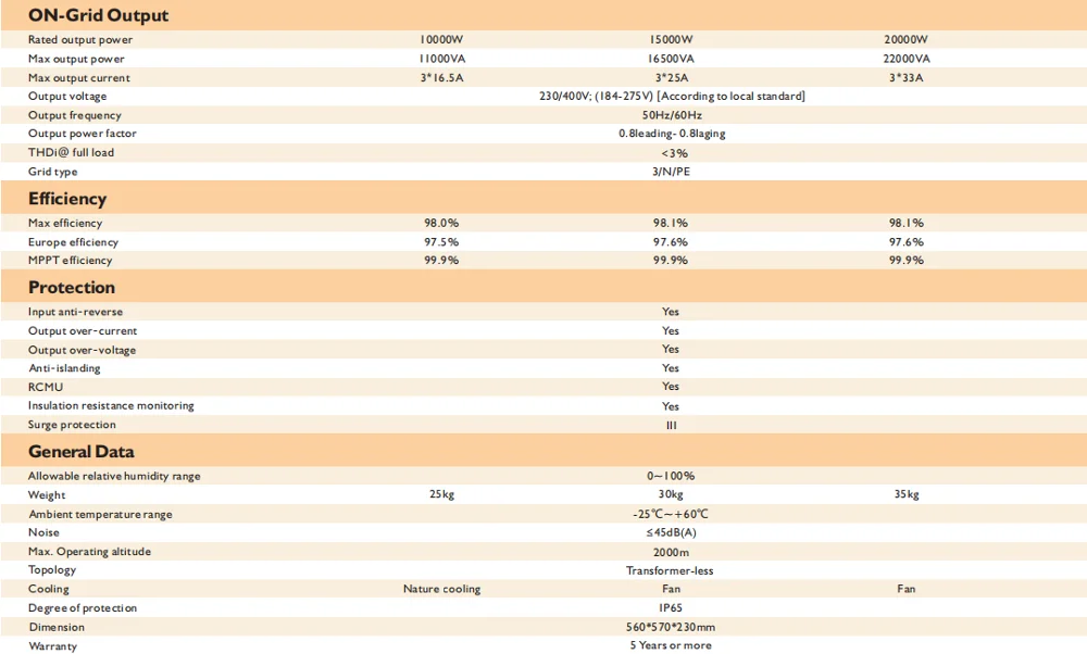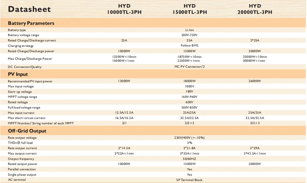 Off-grid output can be connected to unbalanced load,three-phase separate output is supported
