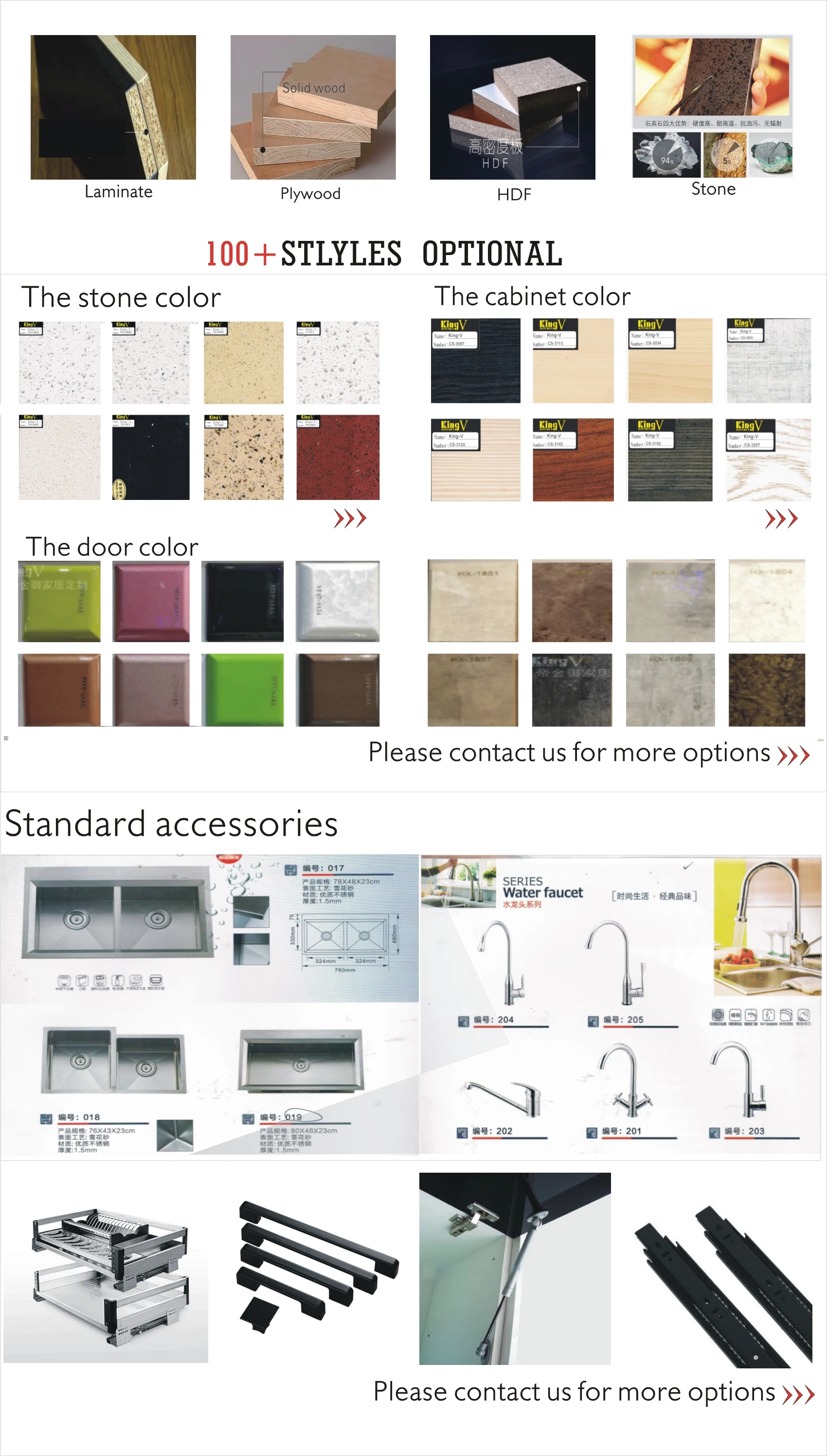 Cabinet accessories | pull-out bracket, faucet, sink, light, waste bin, all kinds of cooking appliances: oven, dish washer, washing machine, microwave,stove | ||||||||