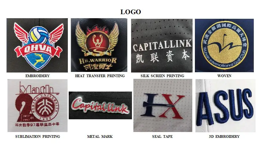 Logo | Printing, Heat transfer printing, Applique Embroidery, 3D embroidery leather patch, woven patch, metal patch etc | ||||||
