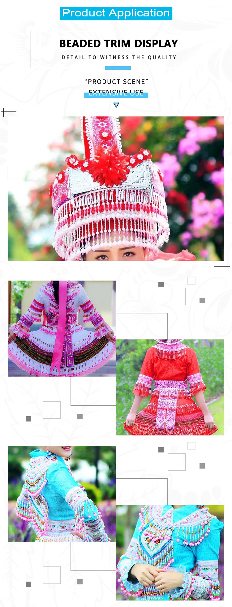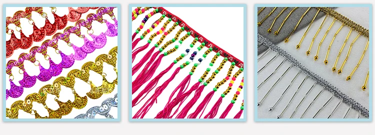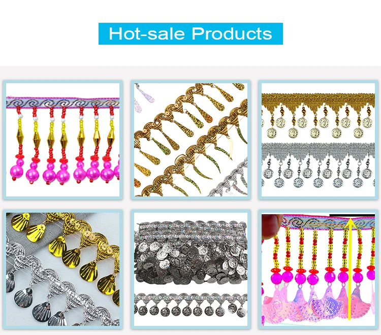 Product Name | China Supplier Ethnic Dance Costume Hats Accessory Tassel Trimmings Gold Silver Metal Beaded Fringe | ||||||