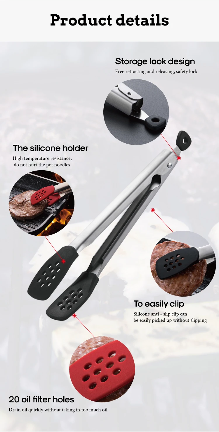 *Product Name | Non-slip Clip Clamp Salad Tools Silicone Bbq Cooking Food Tongs for Kitchen |