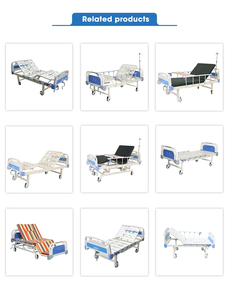 | MAIN FEATURE | l ABS head & foot board can be removable. l Aluminum alloy side rail, 5-staff, collapsed type with safe lock. l Bed sheet top made from perforated steel, epoxy powder coated and bake. l Bed framework made from mild steel ERW rectangle tubes. l Covered castor dia 125mm or 5” with brake. l Dimension: overall L2000XW900XH500MM l With telescopic SS IV pole and 4 pcs hooks. l Optional: overbed table(abs), mattress (8cm), one ABS cabinet with 2.5” castor. |