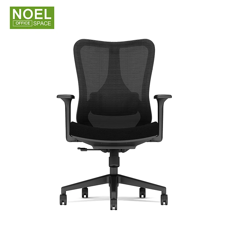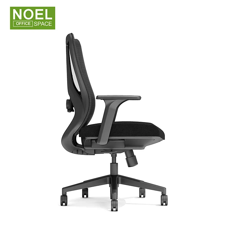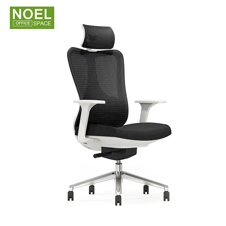 High back office chair | Mesh + fabric | Black | 1) High back new design ergonomic office mesh chair 2) Mesh back + nylon back frame + 2D headrest with height & angle adjuestable + 2D lumbar support (5CM height adj. & 3CM depth adj.) 3) Fabric padded seat with injection molded foam inside + plastic cover 4) Change to height adjustable armrest 5) Multi-functional weight-balance multi-functional mechanism with back reclining & 3 positions locking 6) BIFMA passed CLASS 3 gaslift 7) BIFMA passed 340mm nylon base & BIFMA passed 60MM PU nylon castors |