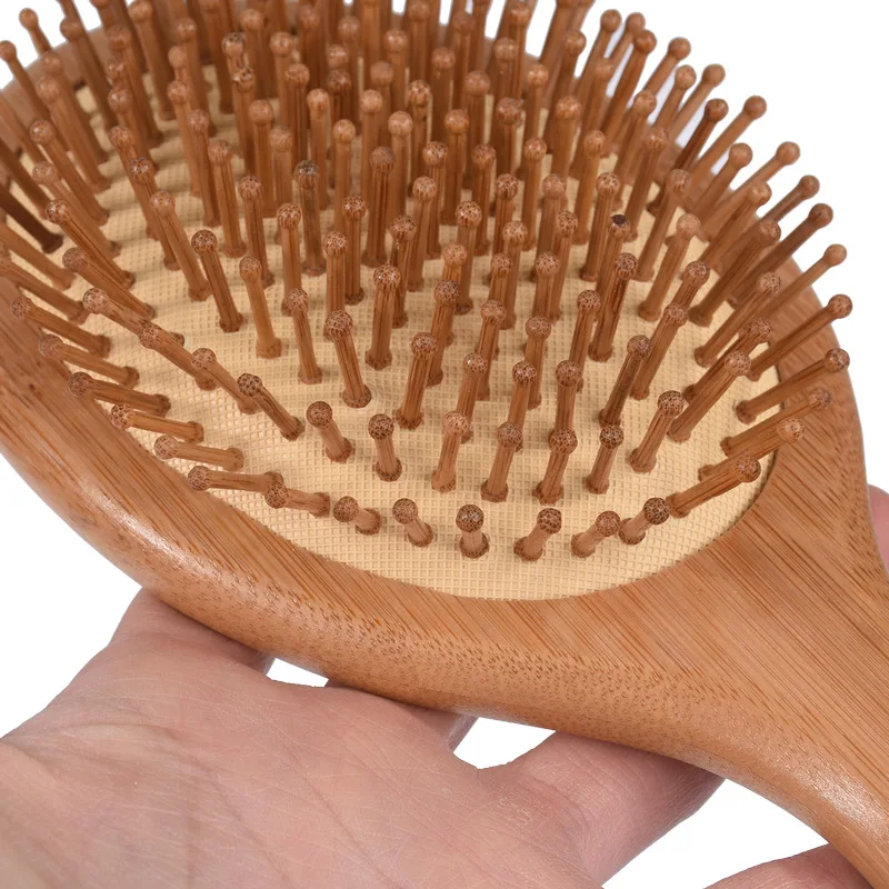 * Material:Hand polished wood results in unique patterns. No two combs are alike.Handmade craftsmanship ensures the combs teeth are not very sharp and will not hurt the scalp. Size: 3 PCS for wooden hair brush (8.8 inch x2.5 inch) one peach wooden comb (6.5 inch x 2 inch) and moon shape comb (6.5 inch x2 inch). Keep one in your car, one in your purse, and one in the shower. Very good for detangling hair. * Benefits: Anti static wood hair brush and peach wooden comb do not damage hair. It massages the scalp in order to stimulate blood flow which results in healthy hair. Other benefits include a reduction in: hair loss, split ends, brittle hair, and even dandruff. * Lesser quality wooden combs are made of two pieces of wood mosiac. Our wooden combs are constructed from a whole piece of peach wood resulting in high quality silicone airbag(Not ordinary rubber) with good elasticity and are long lasting. The air ventilation holes allow air in and out which allows more heat to get directly to the hair when blow drying. * Usable Range: works on all hair types, for men and women, perfect for wet or dry hair, and perfect gift for your dad, brother,