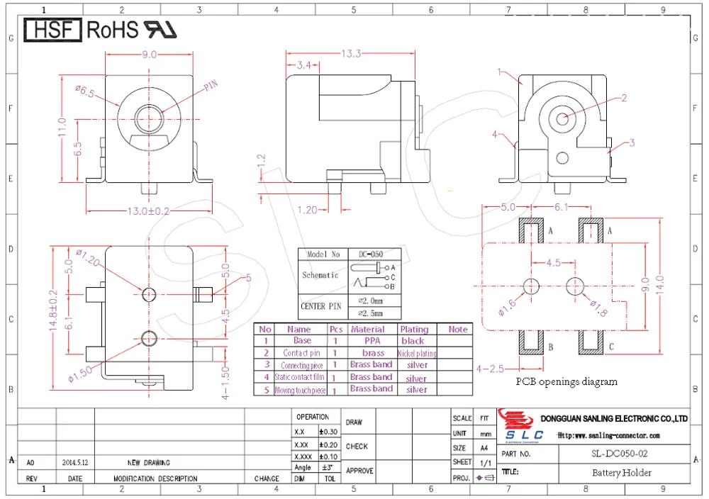 | Description | DC Jack,H11.0mm,Brass over Ni Pin,Silver plated,PPA,Black,Tape&Reel Packing. | |||