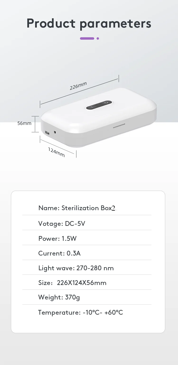 * ADVANCED UV-C LIGHT – Offering wide wavelength coverage at 270-280mm, this UV sterilization box with reflective glass provides 360° protection for universal support.