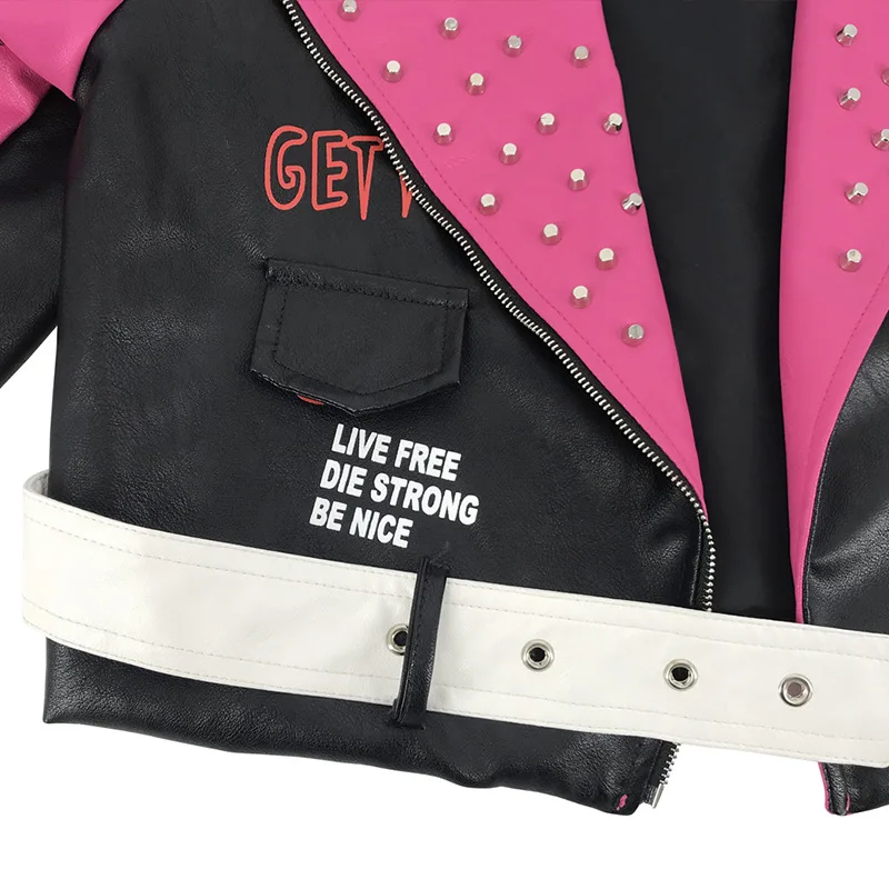 Name | Fall Winter Rivet Print Patchwork Motorcycle PU Leather Fashionable Jacket Women | ||||||