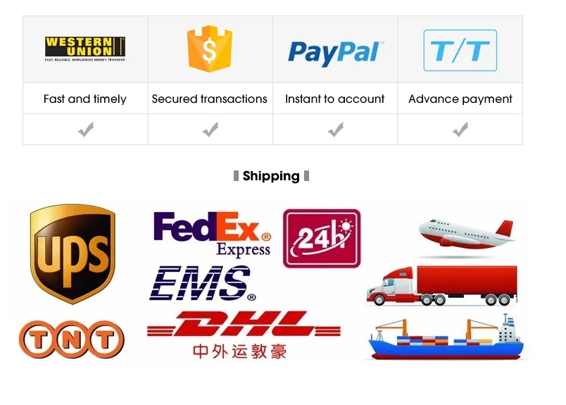Payment | T/T ,Western Union,Paypal,Alibaba trade assurance |