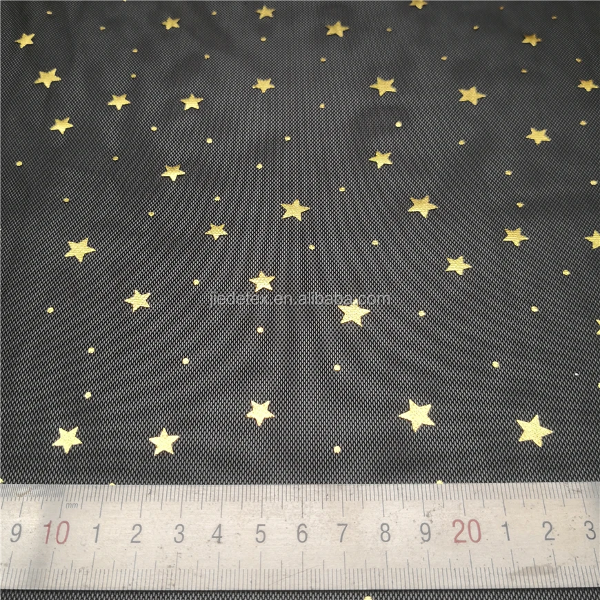 fabric2 :ITEM NAME | BLACK GOLD STAR FOIL DOT SEQUIN MESH FABRIC |