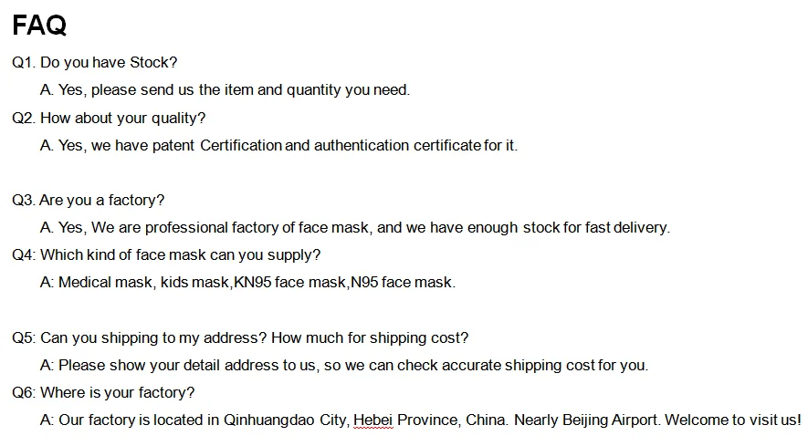 Product Name: | Particulate Respirator (Non-medical) | ||||||