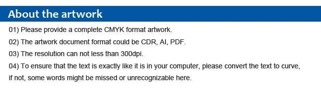 | 9 | Delivery time | According to the quantity. Nomally 12 days |
