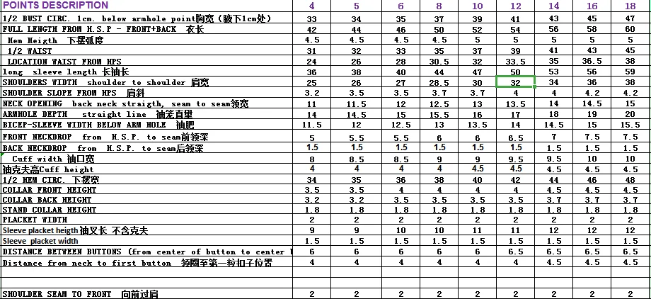 Size chart