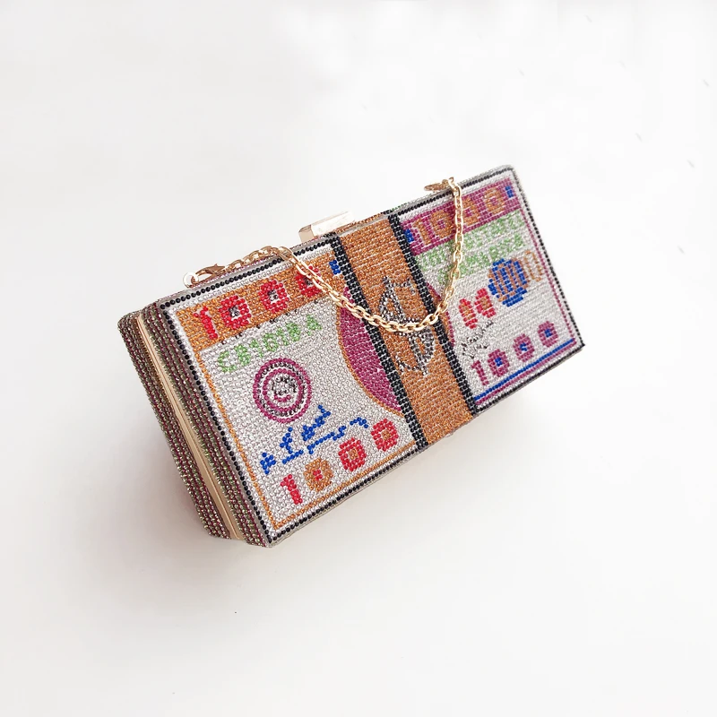 Crystal Evening Bags Stack of Cash Money Bag Women Clutch Girls Ladies Cocktail Party Purses Handbags Dollar Wedding Diamonds
