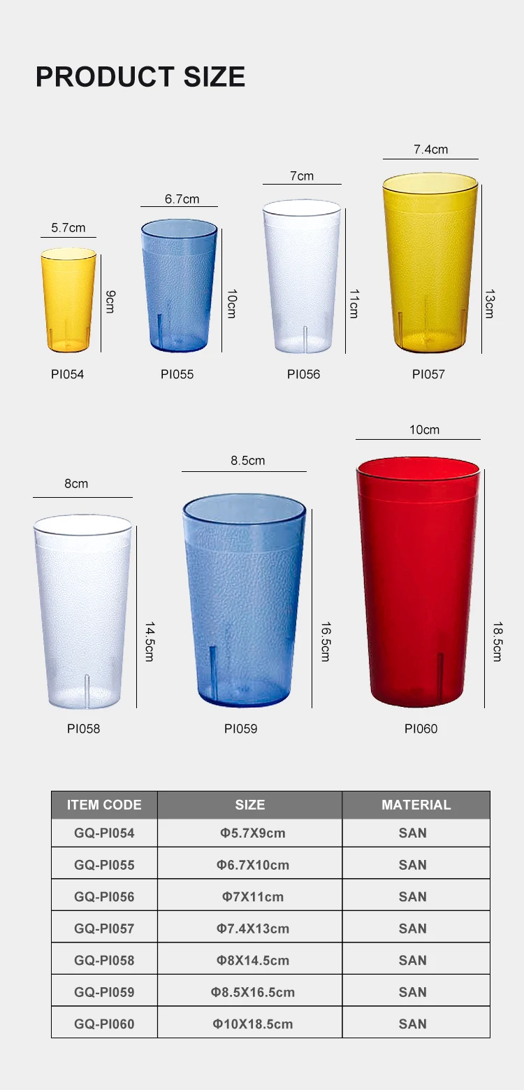 GQ-PI054 | 5 oz. | SAN | Amber Blue Red Transparent | φ5.7*9 | 144 | 35.5*25.5*42 | ||||||